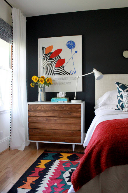 Второй проблемой обустройства интерьера комнаты для двоих является нехватка систем хранения. В этом случае необходимо использовать любую возможность – кровати с выдвижными ящиками в нижней части, открытые полки и небольшие шкафчики-модули, подвешенные почти под потолком, системы хранения, расположенные вокруг дверного проема – наиболее редко используемого пространства.