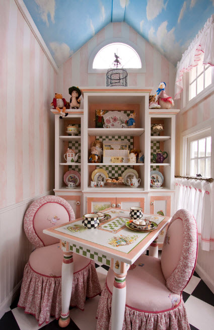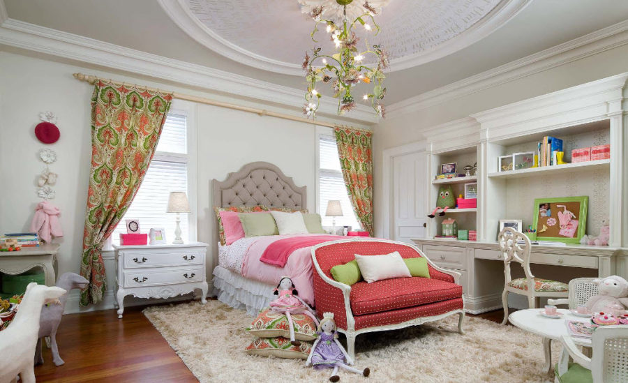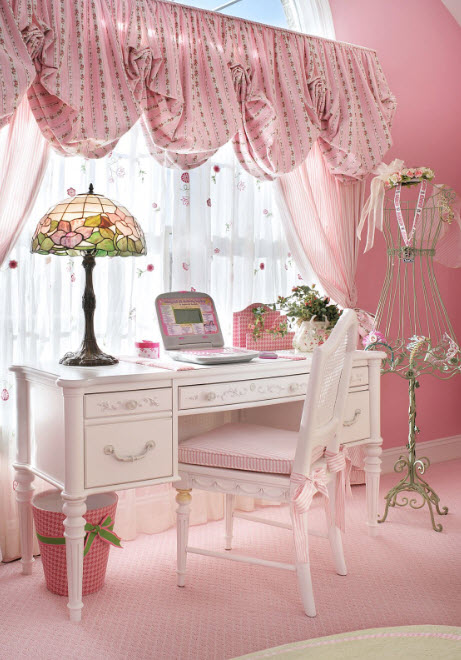 С возрастом, приоритеты маленькой принцессы меняются и должна изменяться обстановка комнаты. Со временем игровая зона становится все меньше, а для занятий творчеством и подготовкой к школе необходимо выделить больше места. Поэтому важно на начальном этапе постараться выбрать мебель, которую можно будет трансформировать под меняющийся образ жизни маленькой хозяйки комнаты. Системы хранения игрушек можно оборудовать под книги и приспособления для занятий творчеством, спортом. Туалетный столик можно совместить с письменным столом, экономя пространство и деньги. Достаточно оборудовать пространство возле стола полками для письменных принадлежностей, но при этом не забыть об установке зеркала и места хранения шкатулок для всяких мелочей.