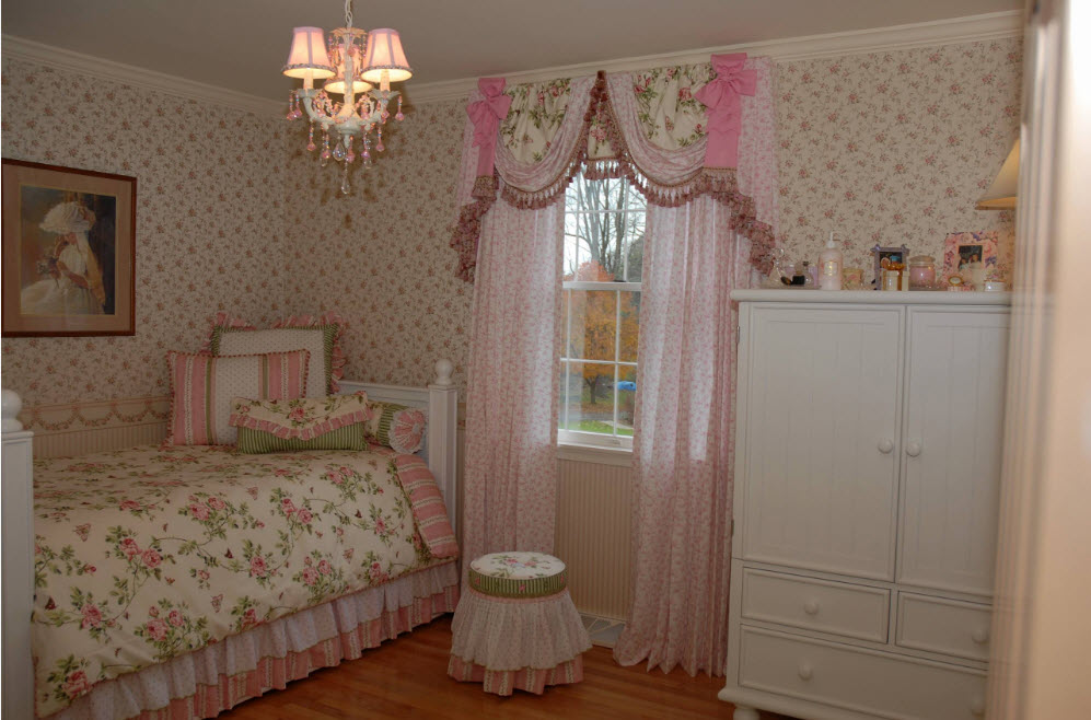Системы хранения и остальная меблировка в барочном исполнении с множеством декоративных элементов – резьбой и молдингами, красивой фурнитурой, смотрятся наиболее уместно именно в девичьей комнате. В такой обстановке уже можно чувствовать себя не просто принцессой, а королевой. В особенности, если к классическому исполнению мебели добавить соответствующее текстильное оформление – множество декоративных подушек, красивые покрывала с оборками и рюшами, богатая обивка мягкой мебели.