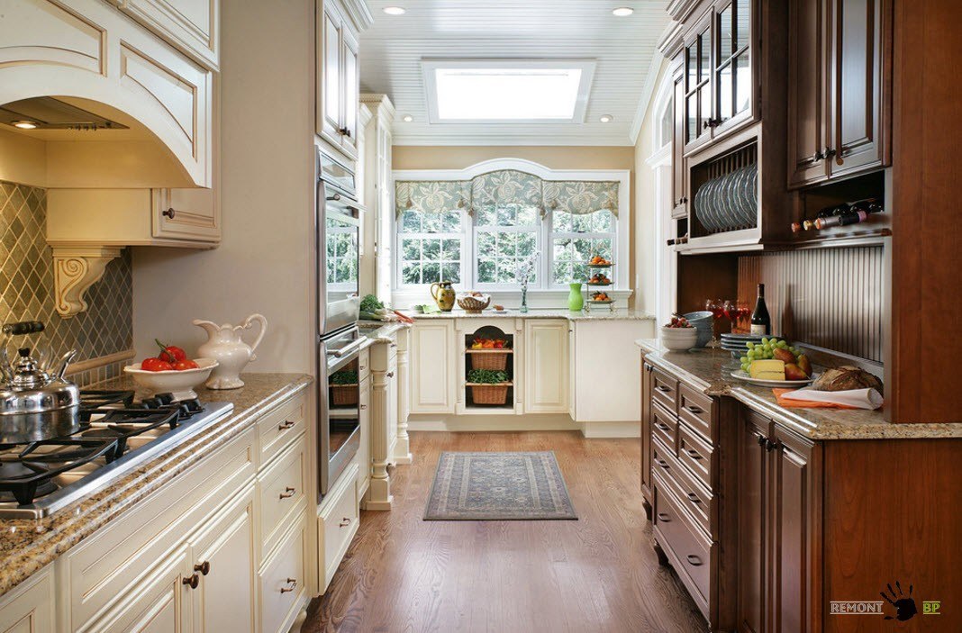 Классический мебельный гарнитур не выходит из моды уже много лет и будет актуален всегда. Изменениям подвергаются лишь способы интеграции современной бытовой техники в классические фасады мебельного ансамбля. При изготовлении кухонного гарнитура для классического интерьера используется натуральное дерево или МДФ, поверхность фасадов может иметь естественный природный рисунок или быть окрашенной, чаще всего в светлые, нейтральные тона.