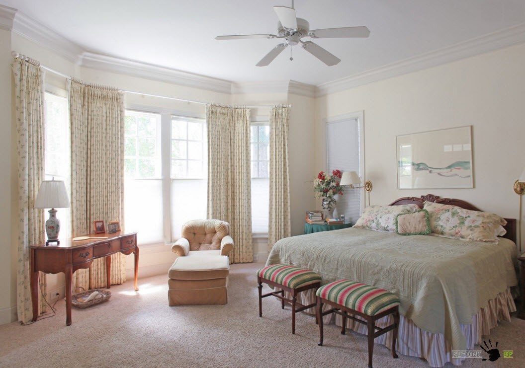 Никто не станет спорить с тем, что основной предмет мебели в спальне – кровать. Но это не единственная меблировка комнаты для сна и отдыха, выполненной в традиционной стилистике. Небольшие кресла и столики-подставки организуют зону отдыха или целый будуар. Прикроватные столики или подставки и банкетки способны создать достойное окружение спальному месту.