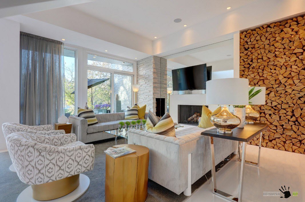 От традиционных стилей оформления интерьеров, в современную эстетику пришла любовь к симметрии. Парному расположению кресел, диванов и небольших столиков современные дизайн-проекты обязаны стилю модерн и неоклассика. Два одинаковых кресла у камина или пара диванов, расположенных другу напротив друга – привносят не только симметрию. Но и организованность и даже прагматизм в современный интерьер гостиной.