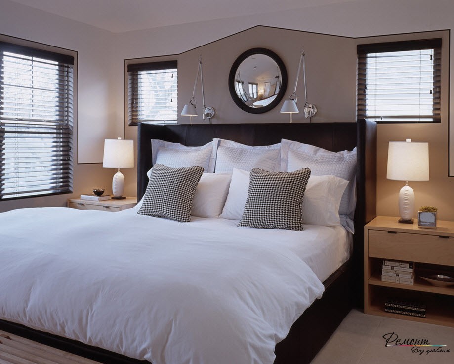 Кровать не должна находиться против оконного проема, закрывая его некоторую площадь. В крайнем случае, кровать может находиться в простенке между окнами.