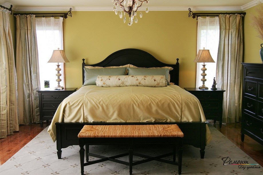 Цветовая палитра мебели должна быть мягкой, успокаивающей. Здесь следует учитывать освещенность спальни. Если помещение плохо освещенное, следует использовать мебель светлых тонов