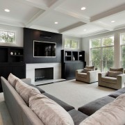 Во-первых, самые необходимые атрибуты – это диван и журнальный столик. В принципе, это все, что должно быть в идеале. Но, поскольку, мы не совсем еще готовы к такому раскладу, да и просто банально нужно же куда-то складывать вещи, которых обычно не мало, допускается наличие модульных стенок, снабженных скрытыми отсеками, нешироких нейтрального цвета. Открытой должна быть только одна полочка – под телевизор.