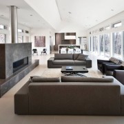 И все это дополняется такими материалами, как натуральное дерево, матовое стекло, хромирование, сталь, алюминиевые профили и кожа.