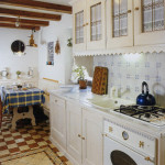 И немного слов о кухонной мебели, выполненной в прованском стиле. Если кухня у вас небольшая, ее все равно можно преобразить элементами прованских кухонь. Просто надо смелее играть с натуральными материалами. Использовать для хранения плетенные корзинки, для вешалок кованные крючки, а вместо шкафчиков открытые стеллажи. Обязательным в интерьере должен быть выполненный под старину обеденный стол, являющийся центральным элементом кухни. Все предметы кухонных аксессуаров должны быть из натуральных материалов, таких как глина, железо, керамика.