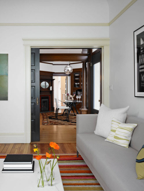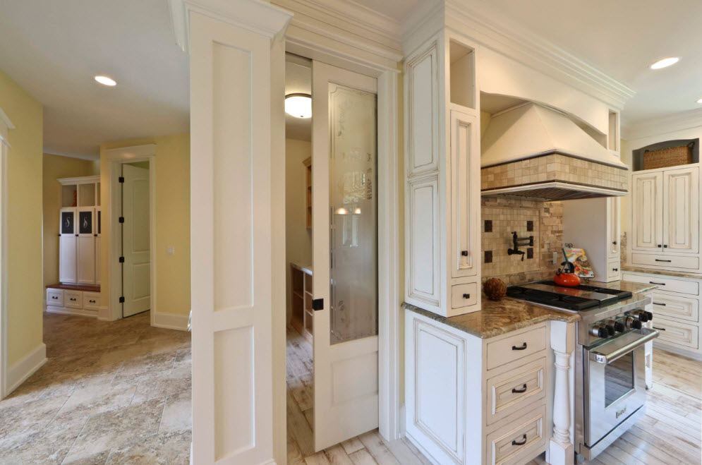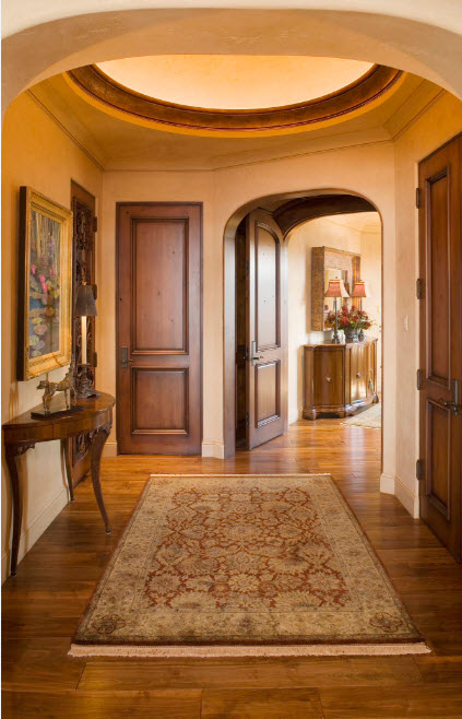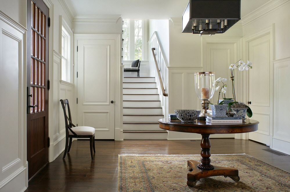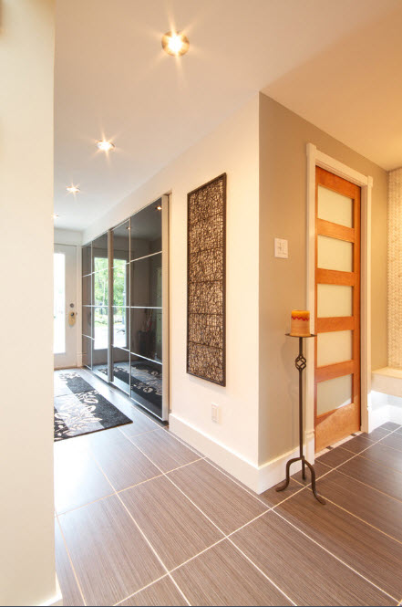 Существует немало универсальных вариантов исполнения дверных проемов, которые способны органично вписаться в любой стиль оформления интерьера (кроме совсем необычных, авангардных). Светлые двери без декора способны гармонично выглядеть практически в любом интерьере, разнообразной цветовой палитре. А вот темные двери любой дизайн делают строже, конструктивнее. Темные двери придадут респектабельности, но и «укажут» на размеры помещения – если ваши комнаты имеет скромные размеры, а потолки невысоки, то нет смысла подчеркивать этот факт. Природный рисунок древесины с рыжеватыми оттенками гармонично вписывается во многие варианты стилистического оформления помещений. Его несложно сочетать с меблировкой из той же цветовой группы, отличающейся оттенками и разбавлять светлыми поверхностями.