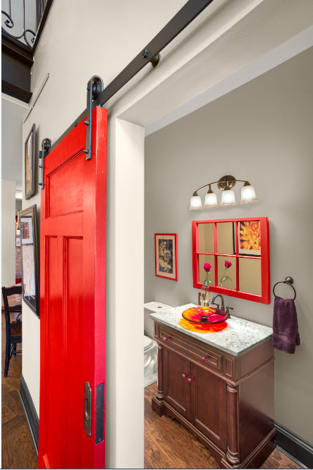Если светлые стены и не менее нейтральные дверные полотна – это не ваш стиль, если вам необходим яркий, колоритный акцент в интерьере, то дверь в комнату вполне способна справиться с такой задачей. Яркая дверь может быть единственным акцентным элементом или поддерживать тон ключевого предмета интерьера, но в этом случае необходимо точно попасть в тон.