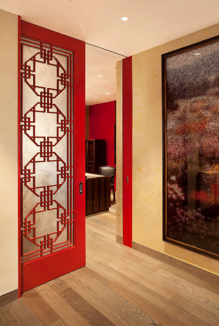 Случается, что само по себе дверное полотно является арт-объектом, произведением прикладного искусства. В этом случае весь остальной интерьер выстраивается вокруг этого элемента интерьера, подчиняя себе отделку, меблировку и декор. Как правило, такие двери выполняются на заказ, чаще всего изготавливаются вручную.