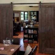 Еще одним популярным вариантом, часто используемым в квартирах, являются сдвижные двери. Суть такой конструкции заключается в том, что дверь задвигается либо в специальный гипсокартонный короб, либо непосредственно на стену. В последнем случае нужно учесть, что близко к проему нельзя будет ставить мебель, чтобы не цепляться за нее.