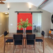 Постоянную прописку в городских квартирах получила всем известная дверь-купе, полотна которой движутся по направляющим рельсам, прикрепленным к потолку, и полу. Движение в такой двери может быть однопутным и или двупутным, в зависимости от количества створок. Стоит отметить, что такая конструкция является примитивной, в настоящее время усовершенствованная подвесная система позволяет не устанавливать нижние рельсы, что никак не влияет на равномерное движение и прочность. Плюс такого нововведения в том, что в помещении можно сделать единое напольное покрытие, что достаточно важно для оформления пространства в маленьких помещениях.