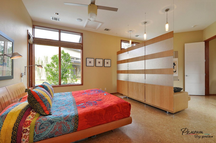 А использовать для этого можно не только неподвижные стены, но и, например, раздвижные конструкции или складные, которые, кстати, визуально еще и увеличат пространство. К таким перегородкам предъявляются следующие требования: они должны быть достаточно прочными, чтобы выдерживать разные нагрузки (например, подвесные полочки), но вместе с тем и максимально легкими, кроме этого, они должны полностью отвечать санитарным и противопожарным требованиям. Для их изготовления могут использоваться самые различные материалы. Ширма представляет самый просто и дешевый способ отгородить пространство от посторонних нежелательных взглядов.
