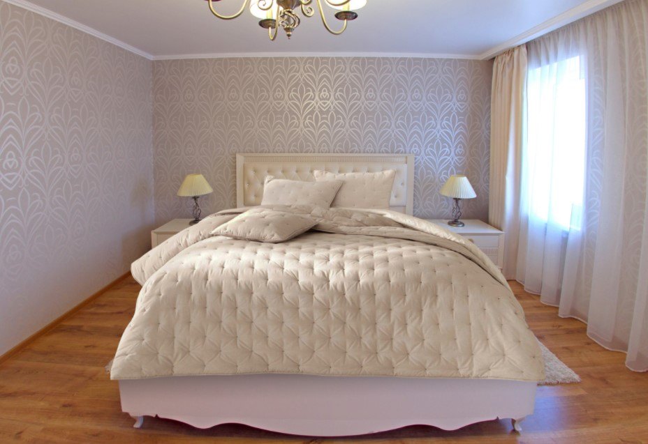 Для того, чтобы выделить светом нужную часть спальной комнаты, специалисты советуют приобрести настенные бра и различного вида настольные лампы. При этом все эти осветительные приборы должны иметь классический вид, без обилия деталей и декор-элементов.