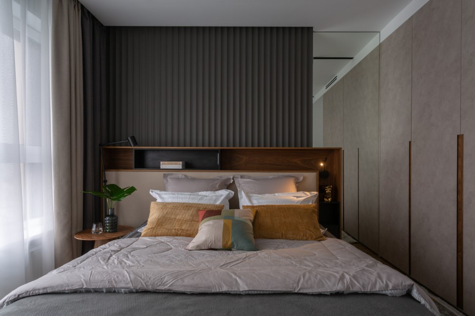 О мебели стоит поговорить отдельно. В минимализме 2023 уместна установка простого гарнитура для отдыха и сна, при этом не перегруженного обилием декора. В минималистичной спальне будет достаточно простой прямоугольной или же круглой формы кровать, выполненная в одном стиле с общей обстановкой.