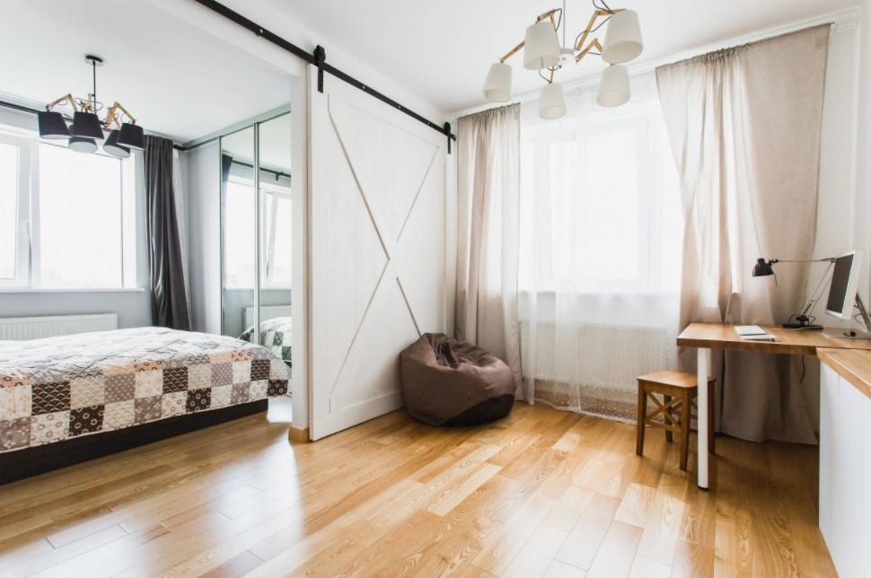 Для отделки пола в маленькой комнате отлично подойдет такой популярный строительный материал, как ламинат. Он более практичен, чем, к примеру, парке, но в обращении такой же приятный и совсем не капризный.