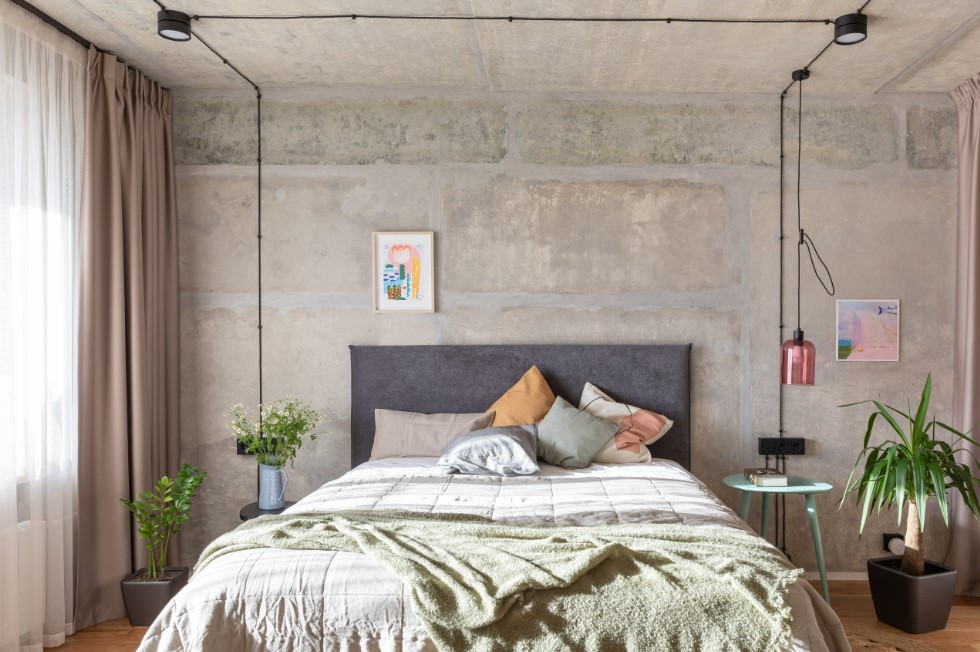 Минималистичную спальню в 2023 году можно представить, как светлую комнату, без излишек в виде аксессуаров и декора, зато с простой и функциональной мебелью и правильным богатым освещением.