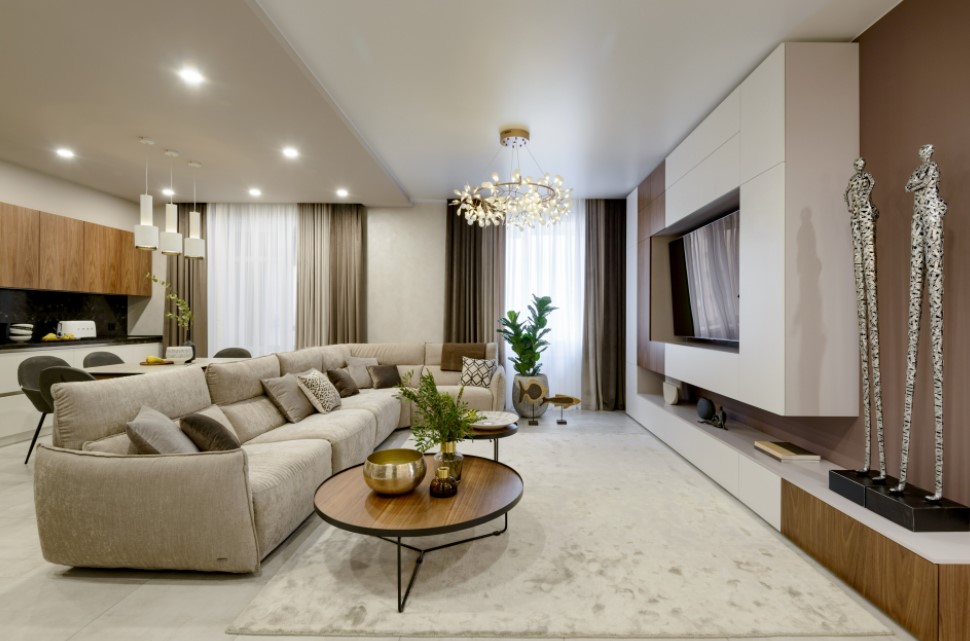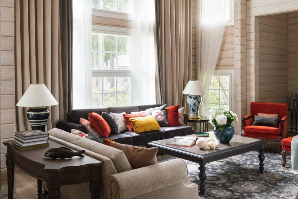 При выборе предметов мягкой мебели учитывают размер и стиль интерьера гостиной, цвет, фактуру и дизайн, индивидуальные потребности и вкусовые предпочтения жителей дома или квартиры.