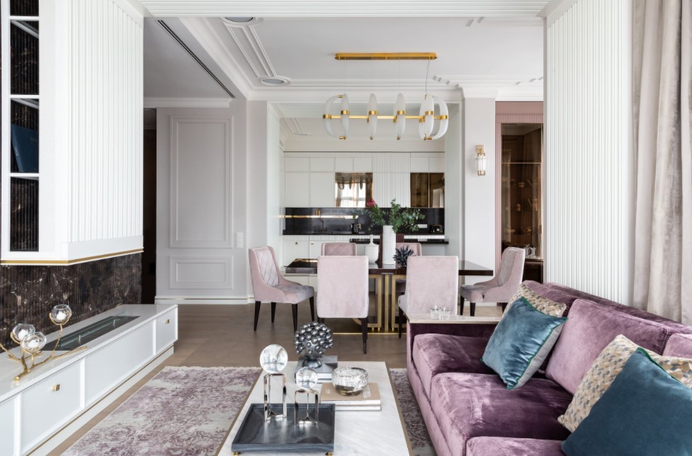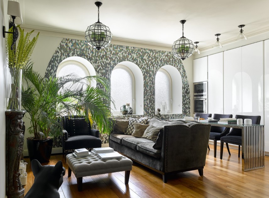 - очень часто используются роскошные акценты на элементах мягкой мебели.