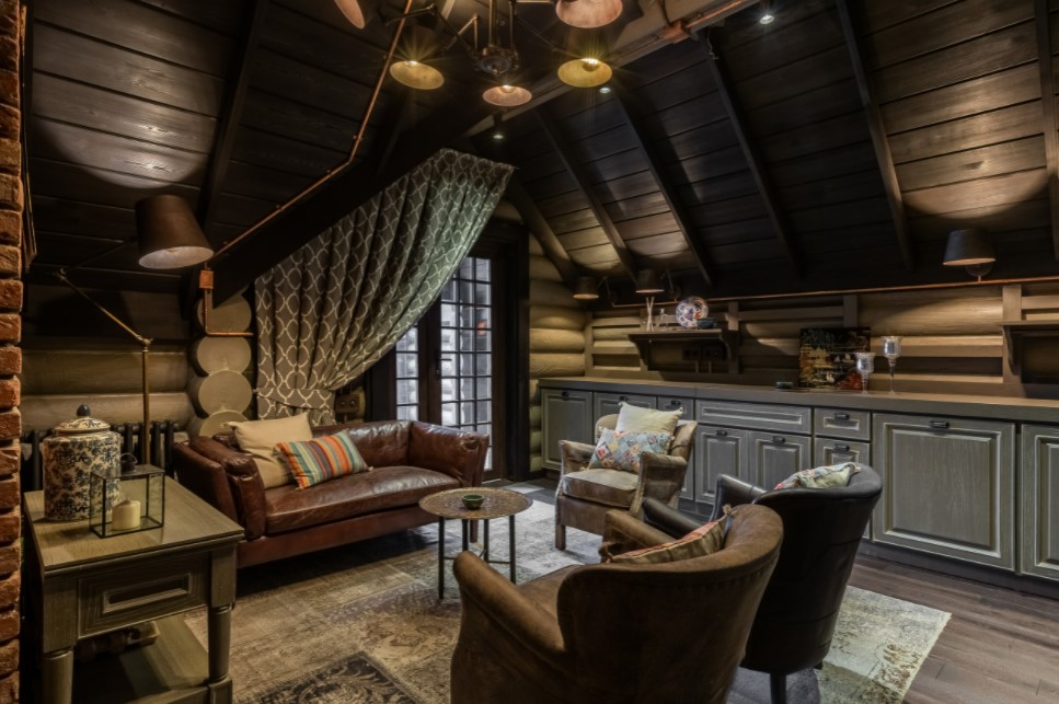 - большой добротный угловой или прямой диван с несколькими дополнительными предметами мягкой мебели (кресла, пуфы, негабаритные банкетки и кушетки),