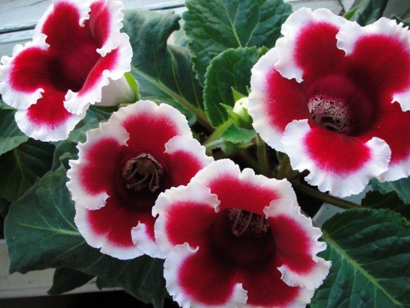 Кроме того встречаются разновидности из двух цветов и с оборками других оттенков. Обычно цветки глоксинии достигают до 5 см в длину и 7 см в диаметре.
