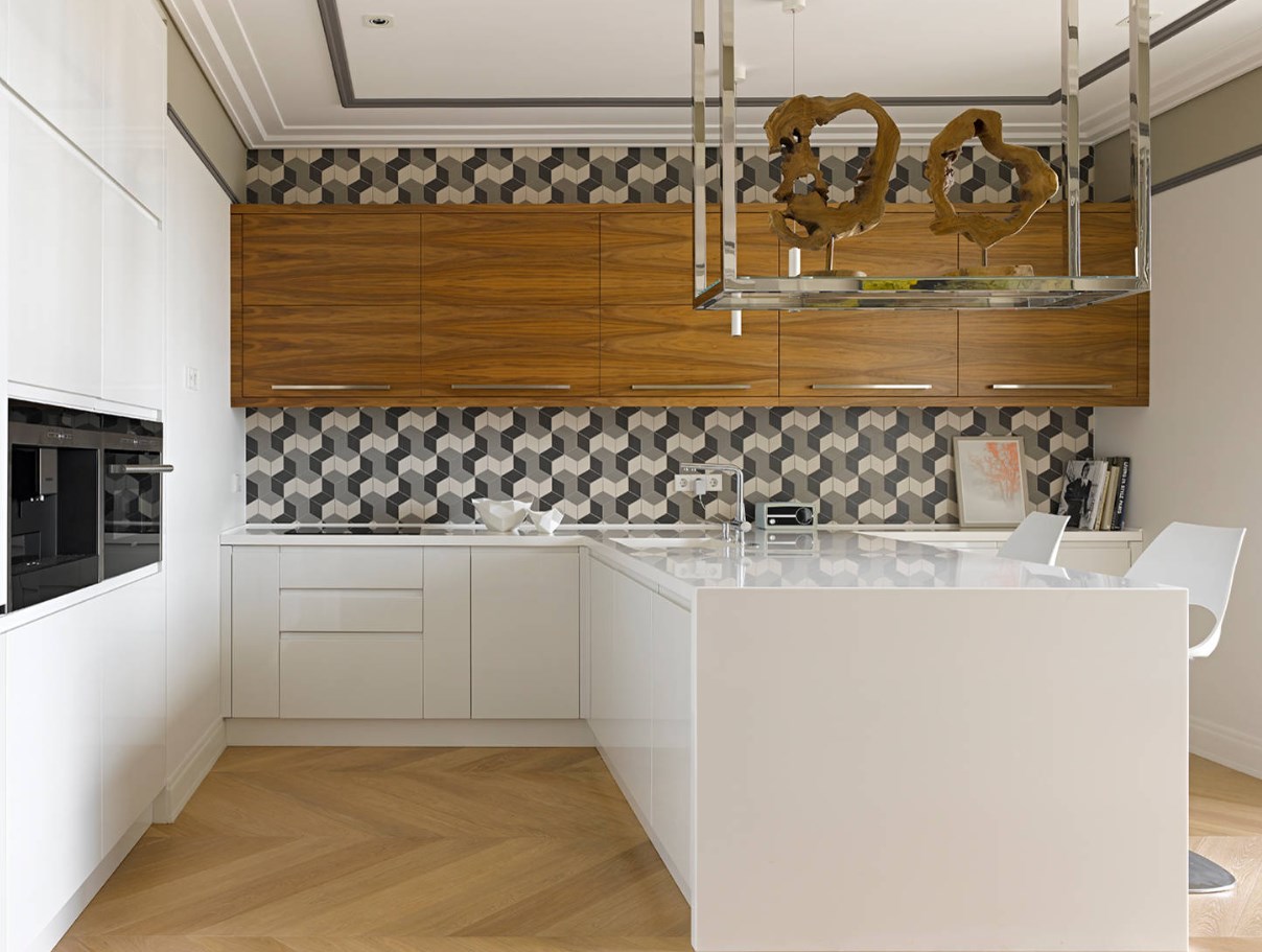 Еще одним бесспорным трендом является фактурная плитка с принтованными выпуклостями. Такая отделка будет разнообразить интерьер, но при этом не выглядеть слишком броско, как в случае с цветными узорами. Принт может быть, как ярко выраженным, так и плавным. Такую керамическую отделку принято использовать совместно с гладкими решениями. Особенно, когда речь идет о глазурованной плитке, отделке в марокканском стиле или азулеже. Особенный акцент специалисты сделали на крупноформатном 3D-узоре.