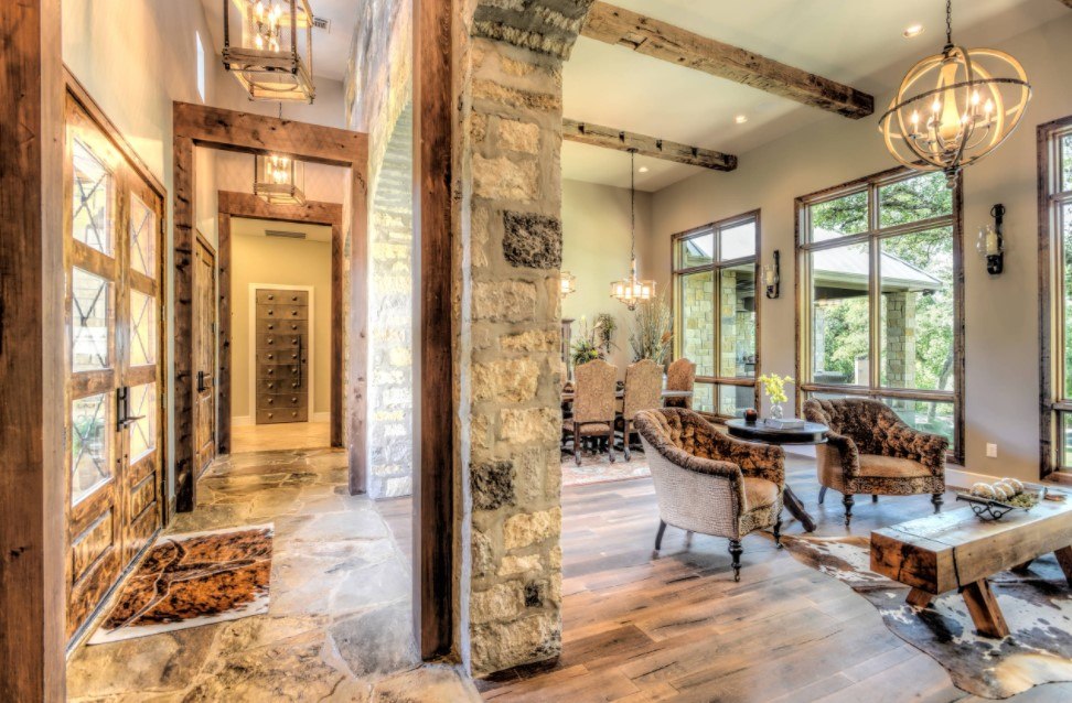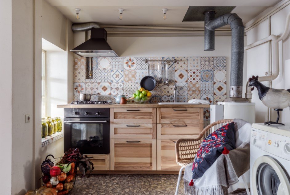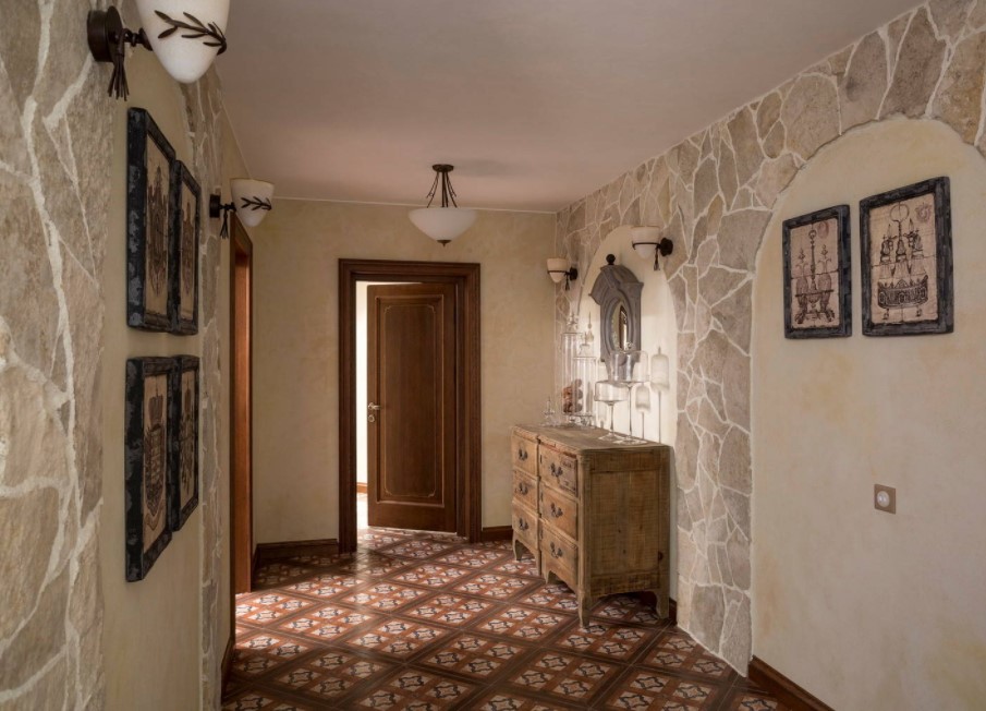 Другой вариант керамической отделки идентичная имитация настоящего кирпича или дикого камня. Интерьер будет выглядеть оригинально и лаконично.