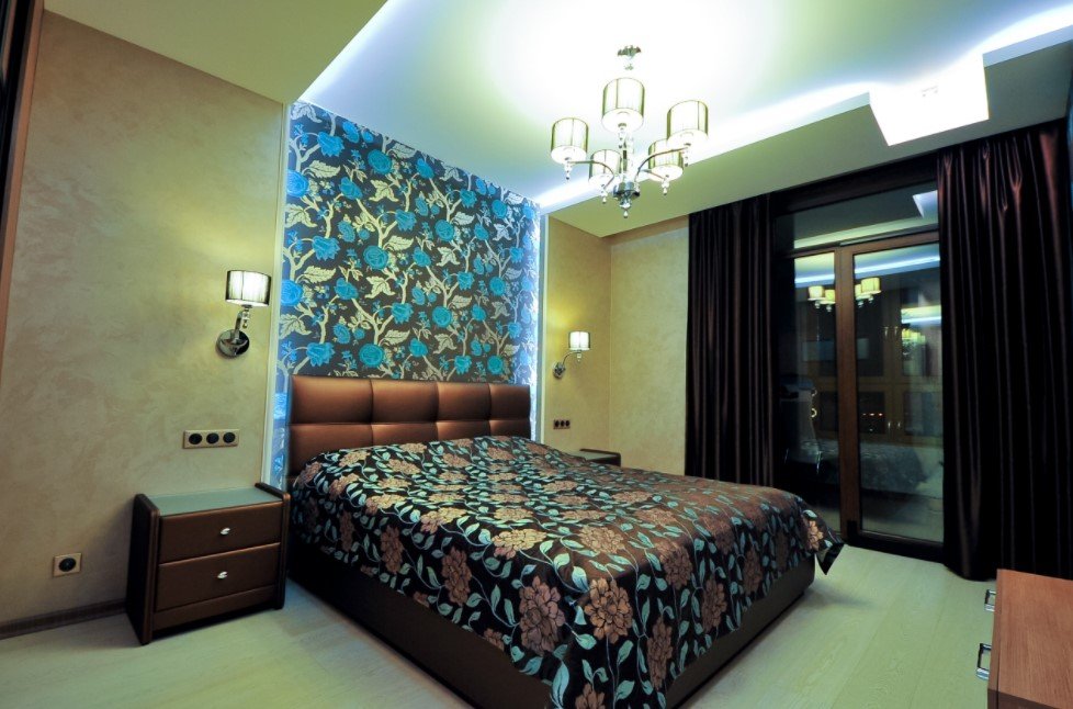 Для удобства можно использовать не только основной свет, но и торшеры, различного вида торшеры, бра, а еще подсветки под спальным местом для обеспечения равномерного и мягкого освещения.