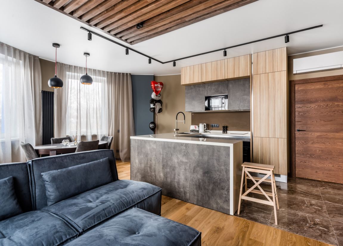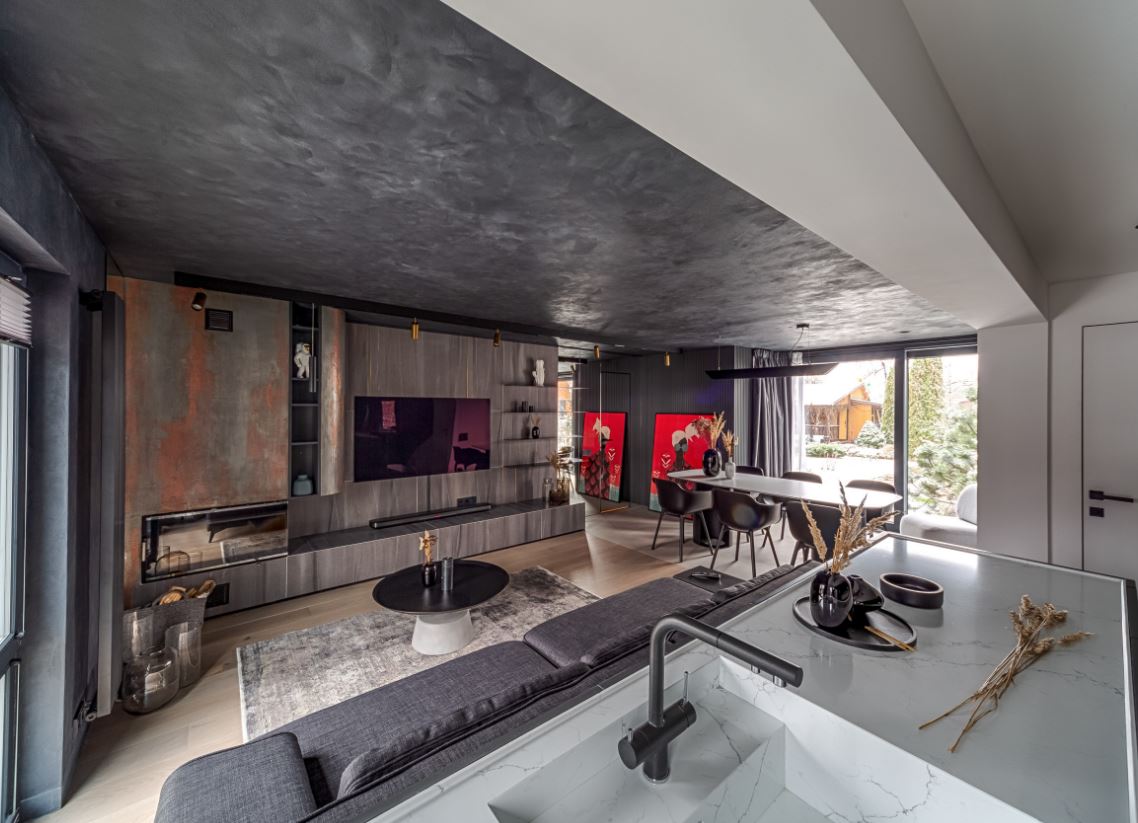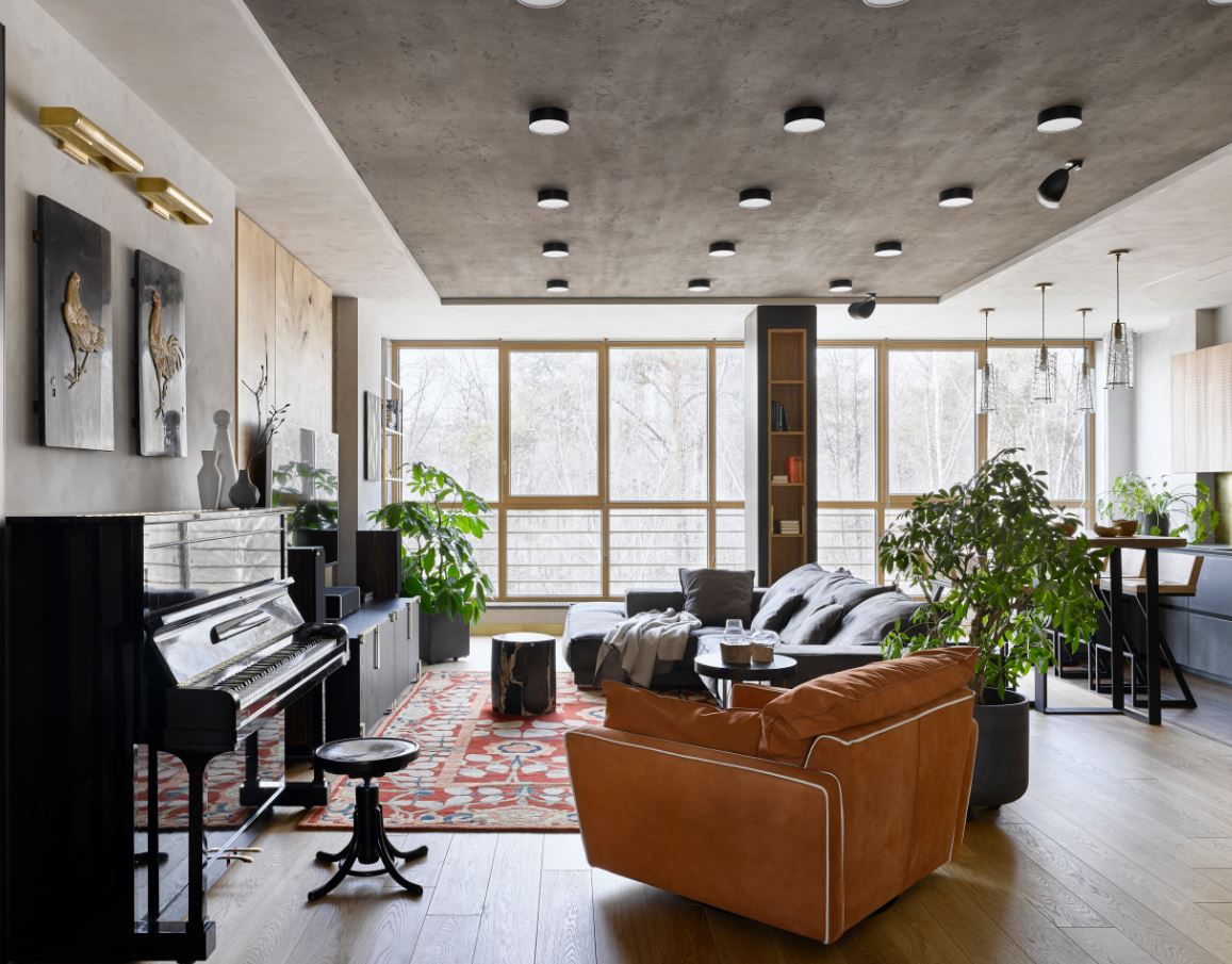 - лофт и минимализм допустимо дополнить геометрическим узором, абстракцией и цветами.