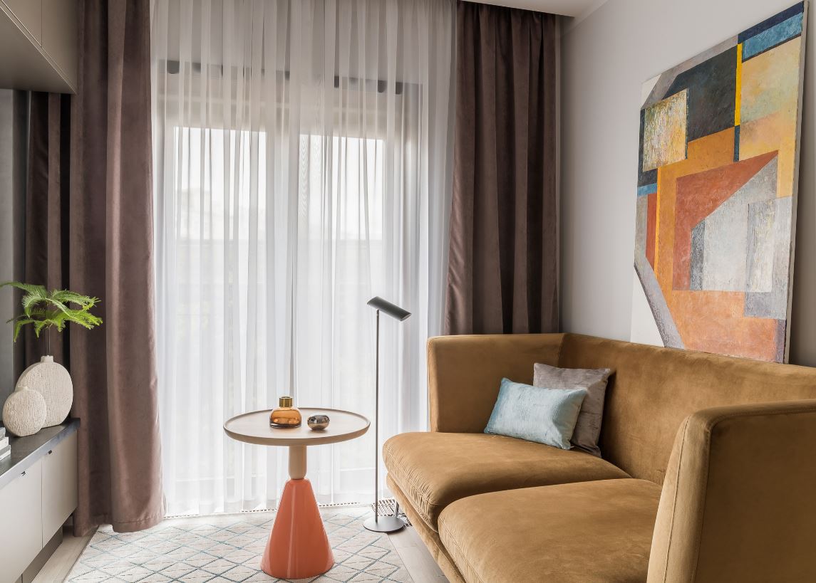 Выбирая полосатый принт для комнаты с низкими потолками следует рассматривать вертикальные полосы на шторах или обоях, а вот для узкой и вытянутой планировки наоборот следует использовать горизонтальные и широкие полоски.