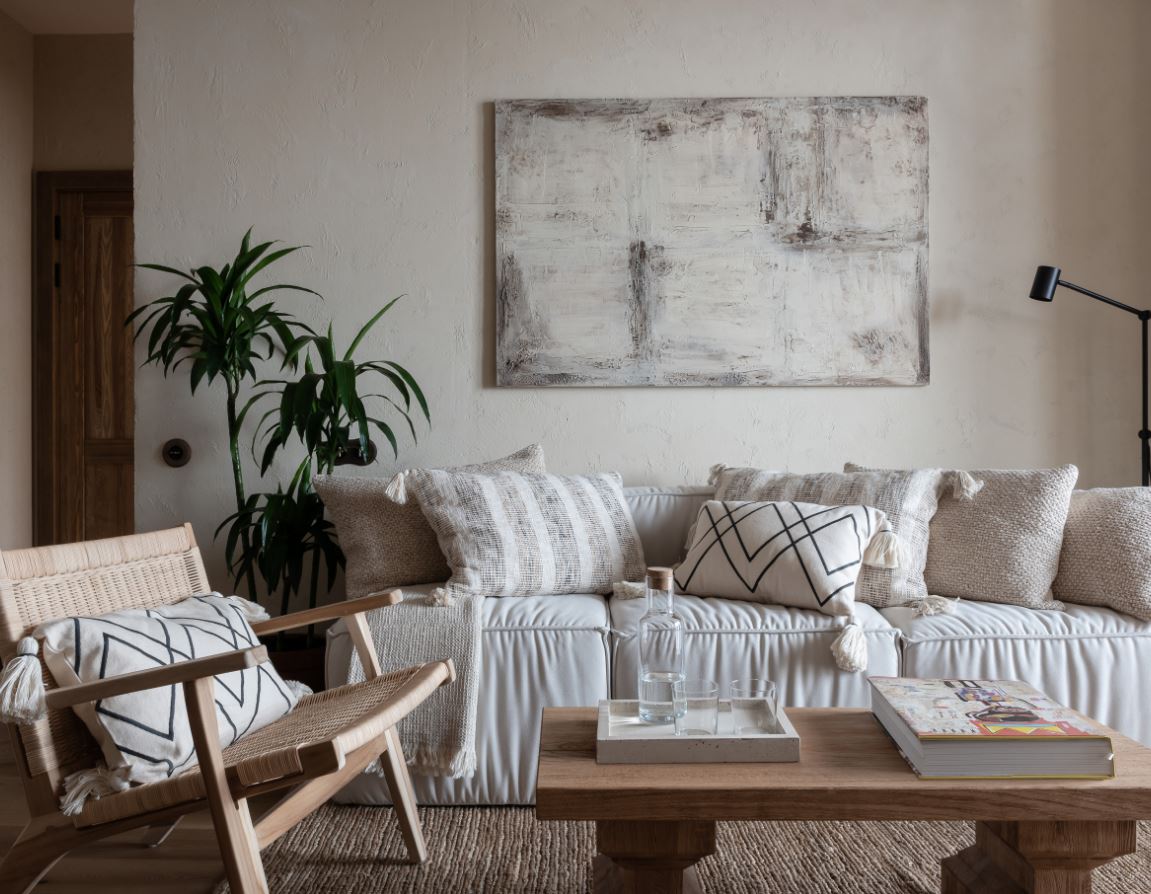 Для подушек, пледов и картин применяют узоры среднего размера, соответственно на вазах, рамках и прочем небольшом декоре располагается мелкий принт. В нем вполне можно использовать более яркую палитру.
