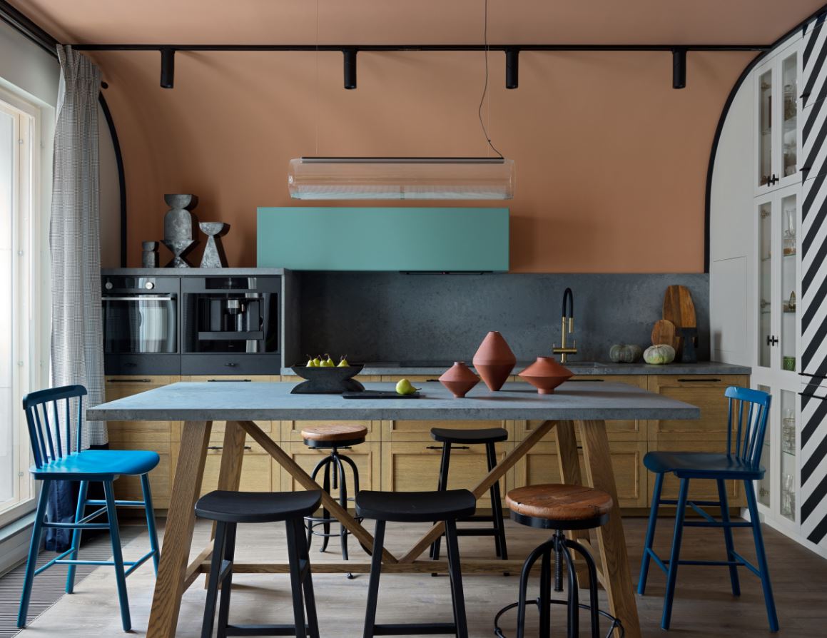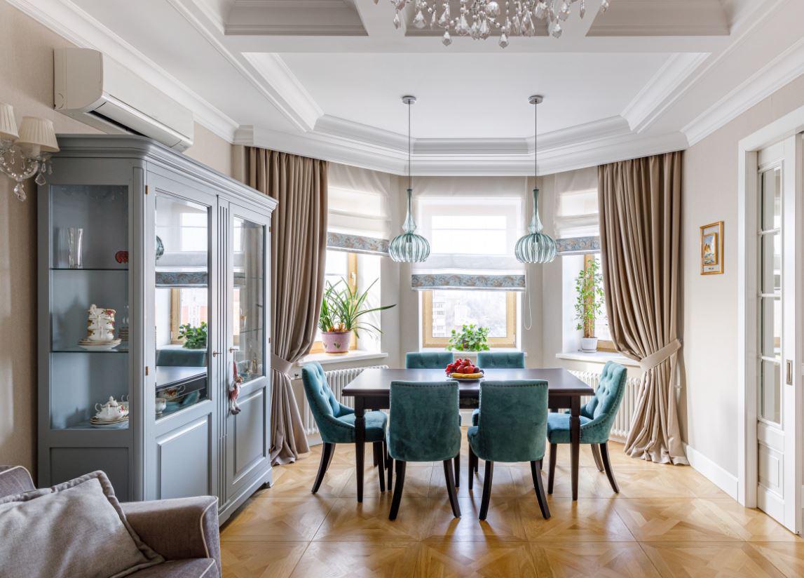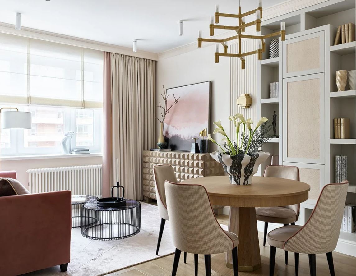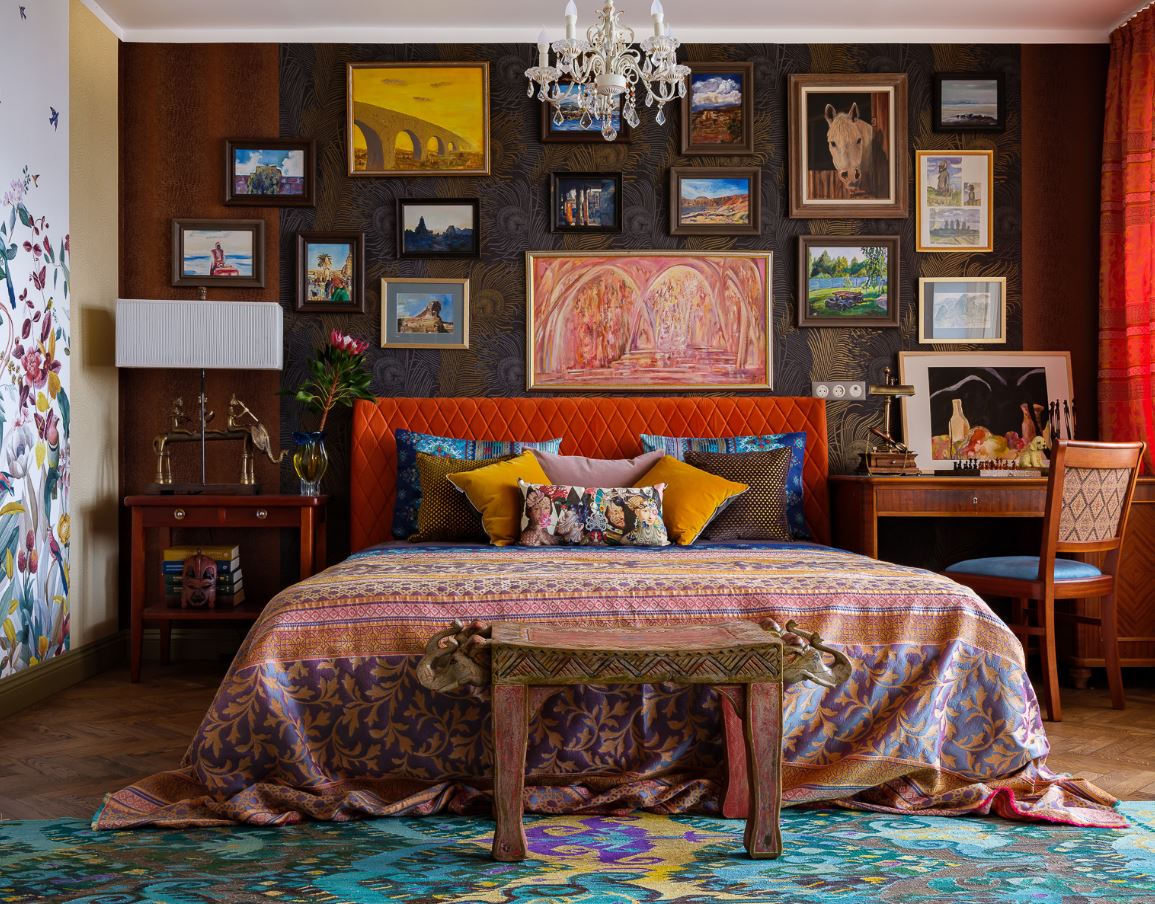 Чтобы не перегрузить интерьер многочисленными узорами, принты следует правильно сочетать между собой. Особенно, когда речь идет о небольших площадях. Для этого используют не более 3-х взаимодополняемых орнаментов. Ввиду того, что что крупные детали узора всегда будут выделяться на фоне других принтов они должны располагаться в рамках фотообоев, штор, ковров. Цвет для крупного узора лучше выбирать нейтральный, так как кричащие тона будут «резать» глаза.