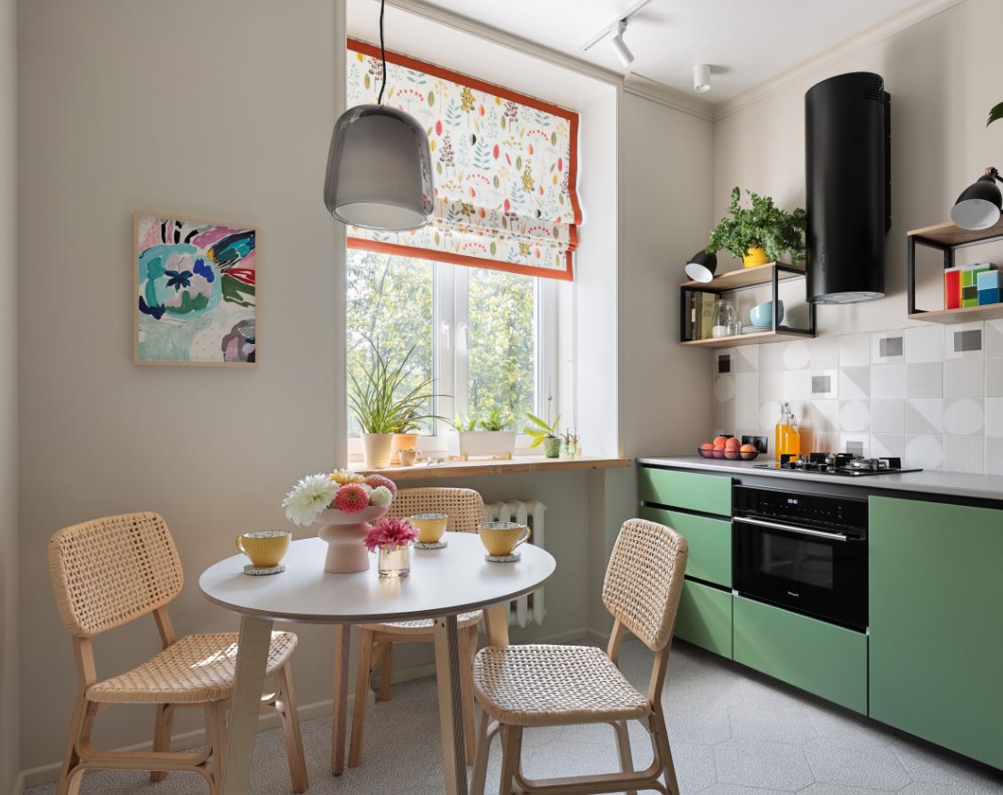 Что касается самого узора, то в нем тоже необходимо соблюдать баланс. Строгие геометрические принты, например, хорошо разбавляет игривый горошек. А экзотические цветы фотообоев хорошо сочетаются с полосками.