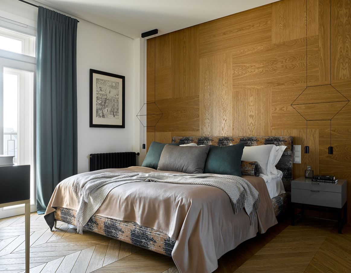 Способностью влиять на визуальное восприятие интерьера обладает узор «елочка» и «зигзаг». Он также может сглаживать неровности и прочие недостатки поверхностей.