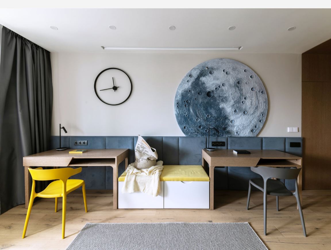 Цвета выбирают по аналогичному принципу – не более 3-х основных цветов в отделке. При этом они должны дополнять друг друга. Например, в комнате с мягким светом и пастельными тонами не следует использовать акценты ядовитых цветов.
