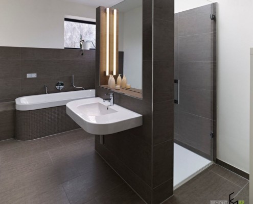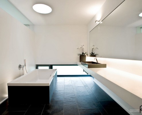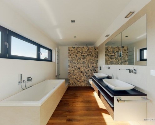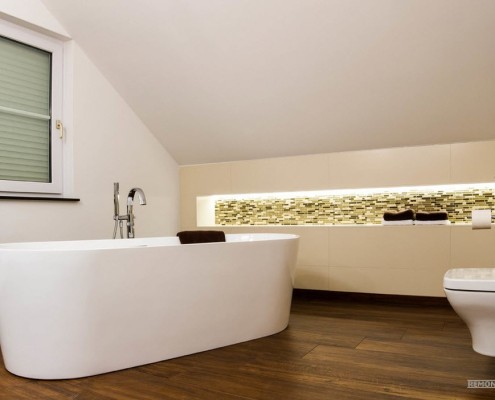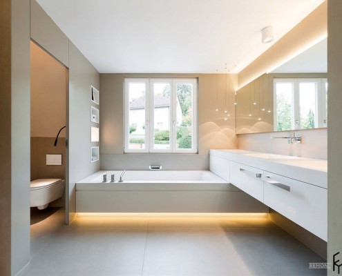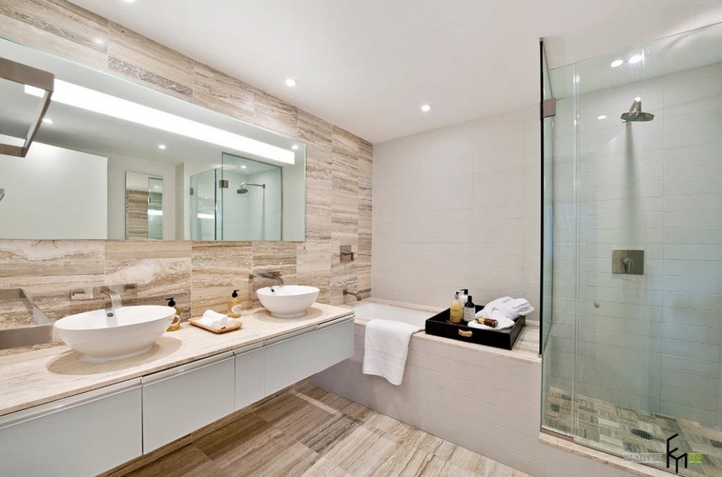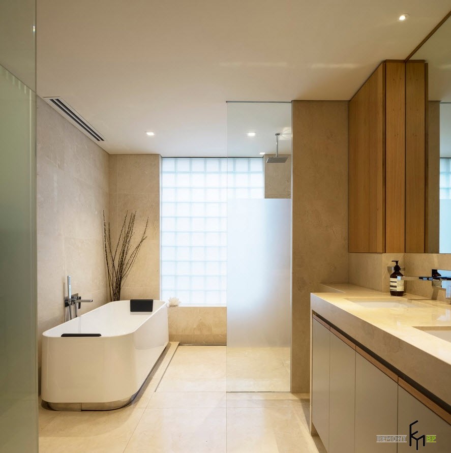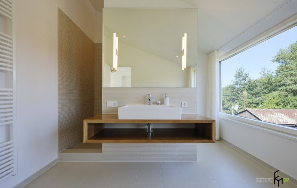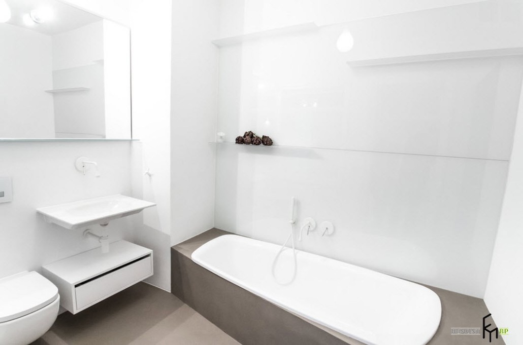 Следующей особенностью ванной сегодня является то, что конструктивно она будет встроена в, своего рода, подиум, при этом, «конструкция» может занимать большую часть или даже всю длину стены.