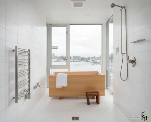 Дизайнеры все время в поиске новых решений. Одним из объектов их поиска является ванная. В текущем году таким новым решением явилась прямоугольная ванная, облицованная деревом или другим материалом со структурой дерева.