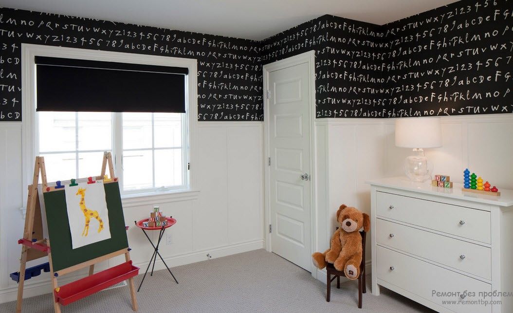 Наибольшее распространение алфавитный декор получил в оформлении детских комнат. Составляя из букв имена малышей, их вывешивают на двери спален, оформляют текстовым содержанием зоны активности маленьких первооткрывателей, помогая им тем самым осваивать алфавит, поддерживать увлечения к буквам и повышать самооценку с помощью «тайн их имен».