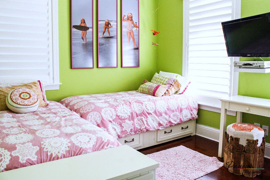 - В детской комнате малыша можно использовать совсем простые, понятные ребенку формы. Это могут быть различные фигурки животных, нарисованные в разных оттенках одного цвета, который преобладает в комнате. Для детей постарше идеально подойдет подборка личных фотографий в одном стиле, выполненных на холсте, а также изображения кумиров или любимого вида спорта.