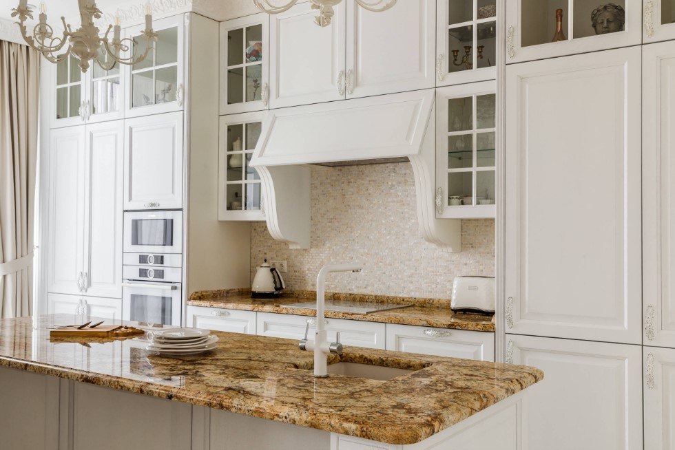 Столешницы можно выбрать на любой вкус под мрамор, под дерево или с имитацией натурального камня.