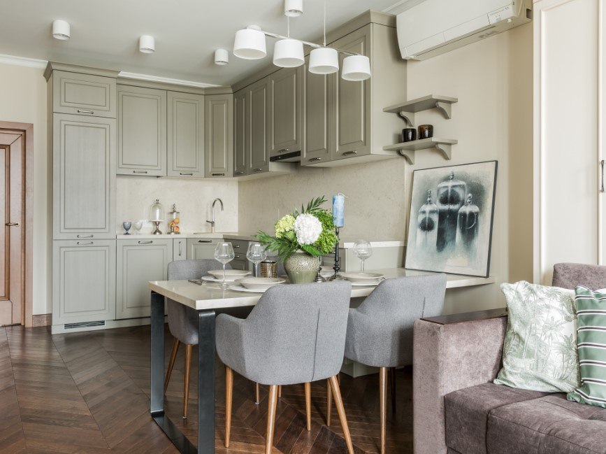 Для небольших квартир в качестве эконом-варианта подойдет модульная кухня, которую можно приобрести поэлементно и собрать своими руками. К преимуществам модульной кухни можно отнести: функциональность, недорогая цена, несложная и быстрая сборка.