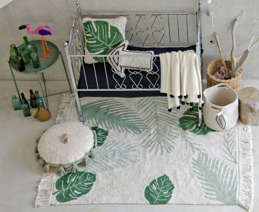 Принт с монстерой наносят также и на ткань. Изображением данного цветка украшают подушки, покрывала, занавески и другой текстиль.