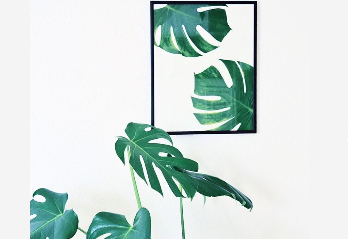 Не обязательно быть цветоводом, чтобы украсить свою квартиру таким цветком как монстера. В любой типографии вы можете распечатать постер с изображением листьев этого цветка.
