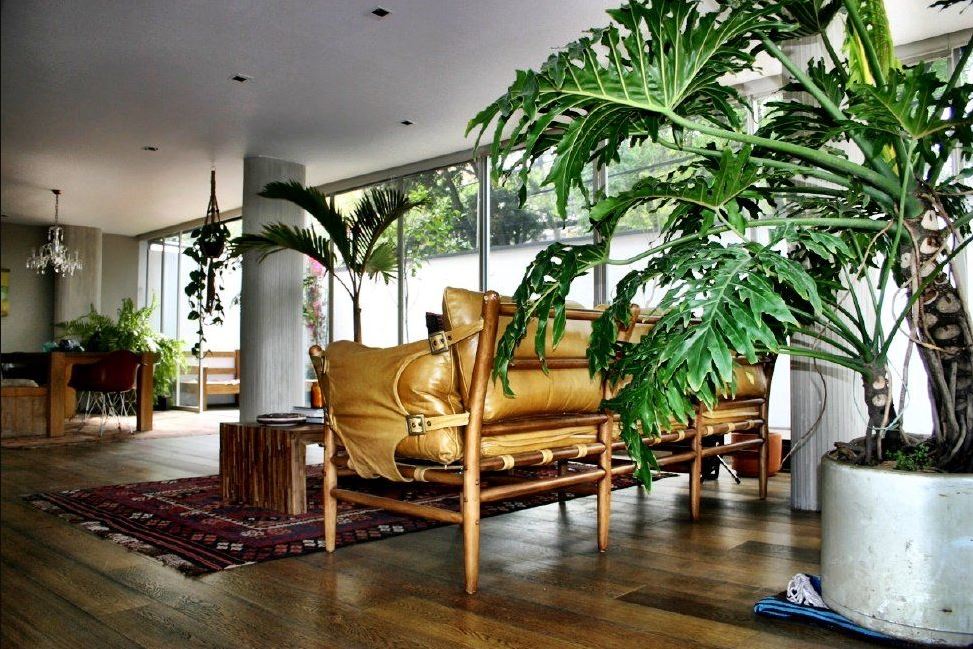 Крупнолистные растения сейчас довольно модны в дизайне интерьера. Такие растения высаживают в кадки и большие горшки, а в вазы ставят срезанные листья. Много лет дизайнеры наполняют свои проекты декорированием помещений тропическими цветами и растениями.