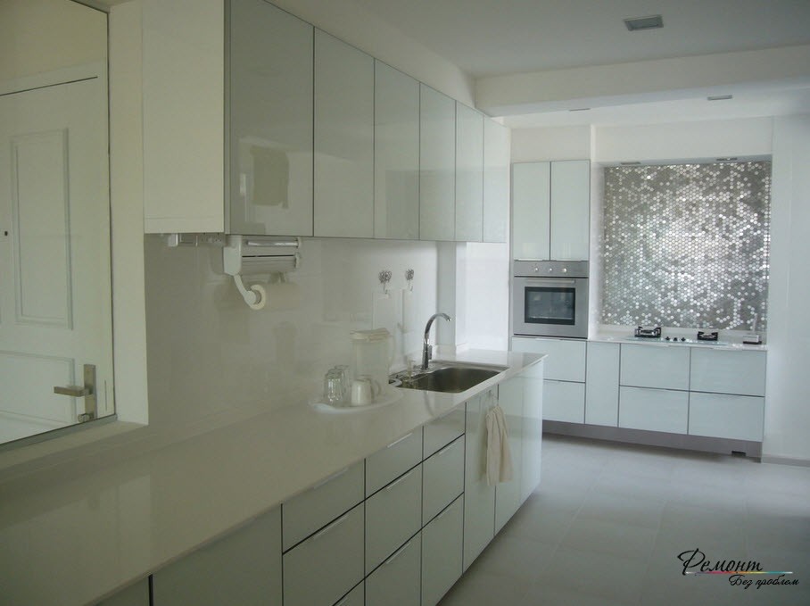 Выполнить мозаичную картину можно из стекла, металла, камня (натурального или искусственного) или керамики. При этом важно качественно обработать все швы, поскольку от этого зависит долговечность эксплуатации такого фартука и возможность поддерживать его в идеальной чистоте. Чтобы после очистки мозаика имела глянцевый блеск ее достаточно протереть мягкой тканью.