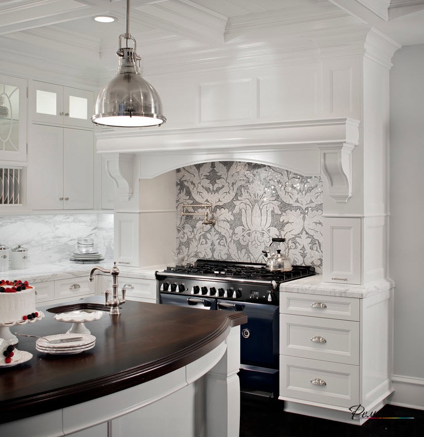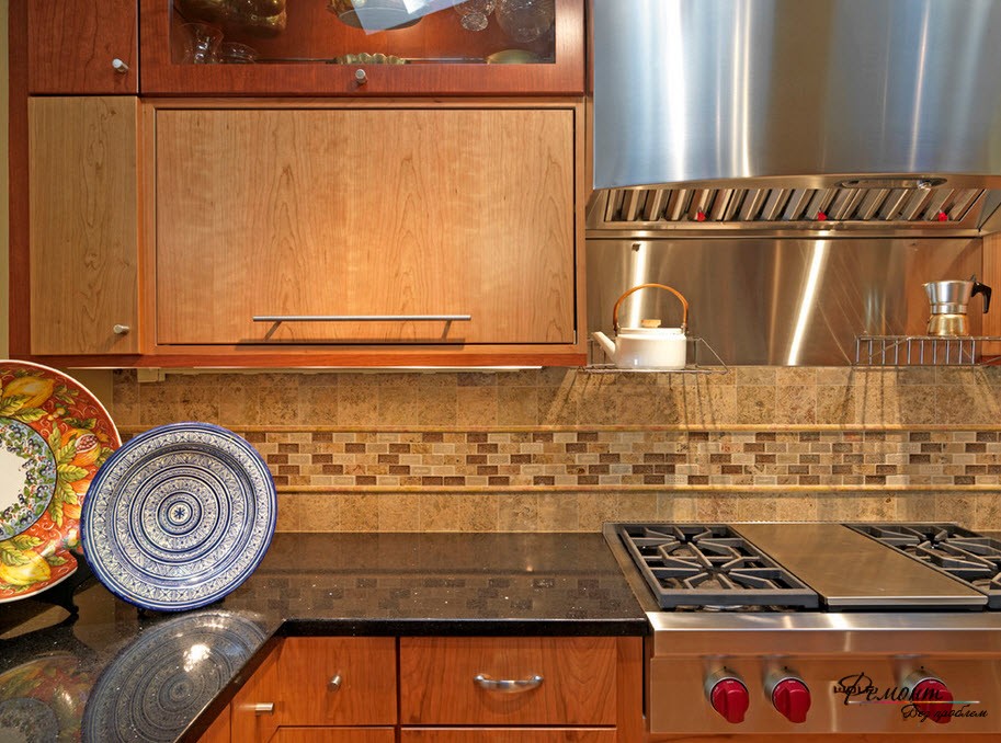 Мозаичные узоры имеют широкое применение в оформлении помещений. На кухне мозаику можно монтировать в качестве фона на стенах и других поверхностях. Среди них:
