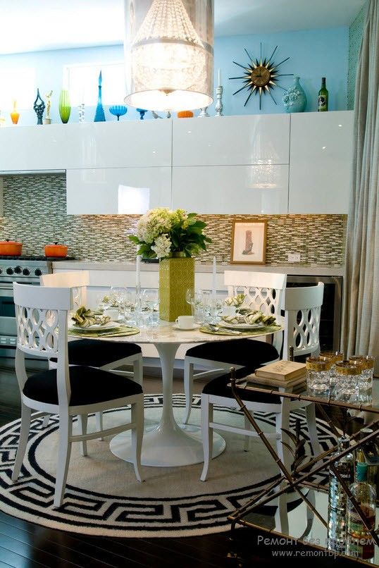 - Керамическая мозаика так же не отстает от лидера. Она производится по двум технологиям: аналогично керамической плитке, только меньшего размера, и в виде листов керамогранита с последующей нарезкой. Основной прием при составлении орнаментов – чередование глянцевых и матовых участков различных оттенков. Низкое водопоглащение и повышенная механическая прочность позволяют использовать покрытие в прихожих, ванных и кухнях, создавать акценты в виде панно на стенах и полах в любых помещениях.