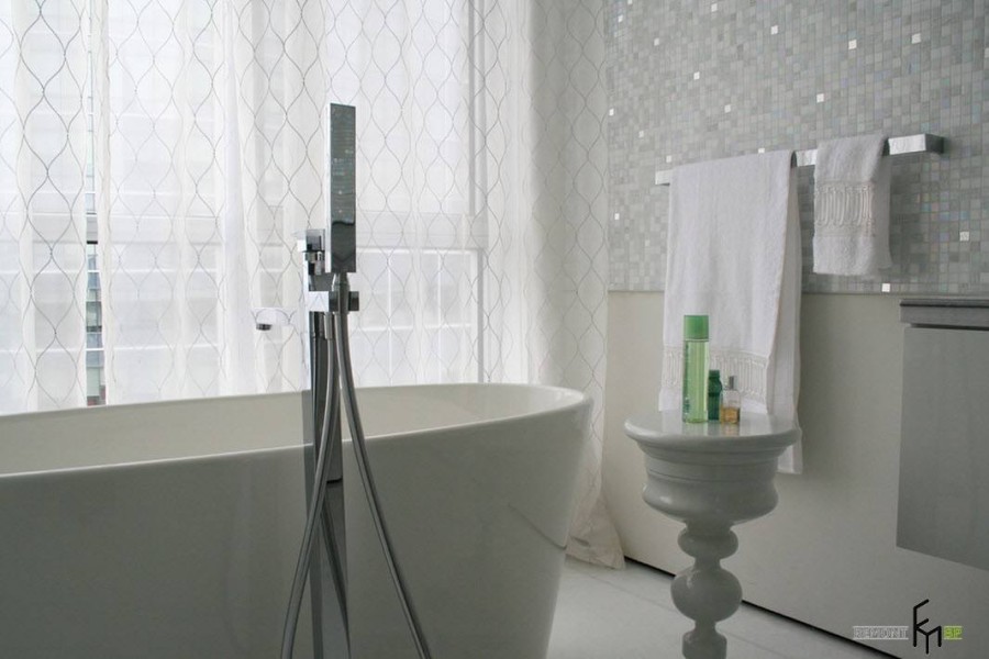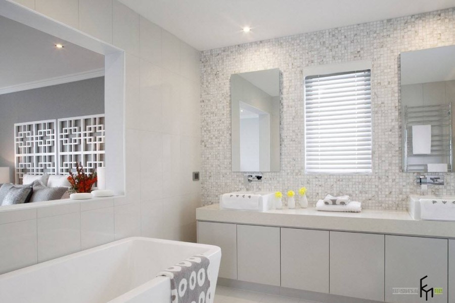 Светлые оттенки мозаичной плитки способны зрительно расширить пространство ванной комнаты, которое очень часто в этом нуждается. К тому же, спокойная, нейтральная палитра настраивает на расслабление и покой, которые необходимы домочадцам после непростого трудового дня во время принятия ванны или душа.