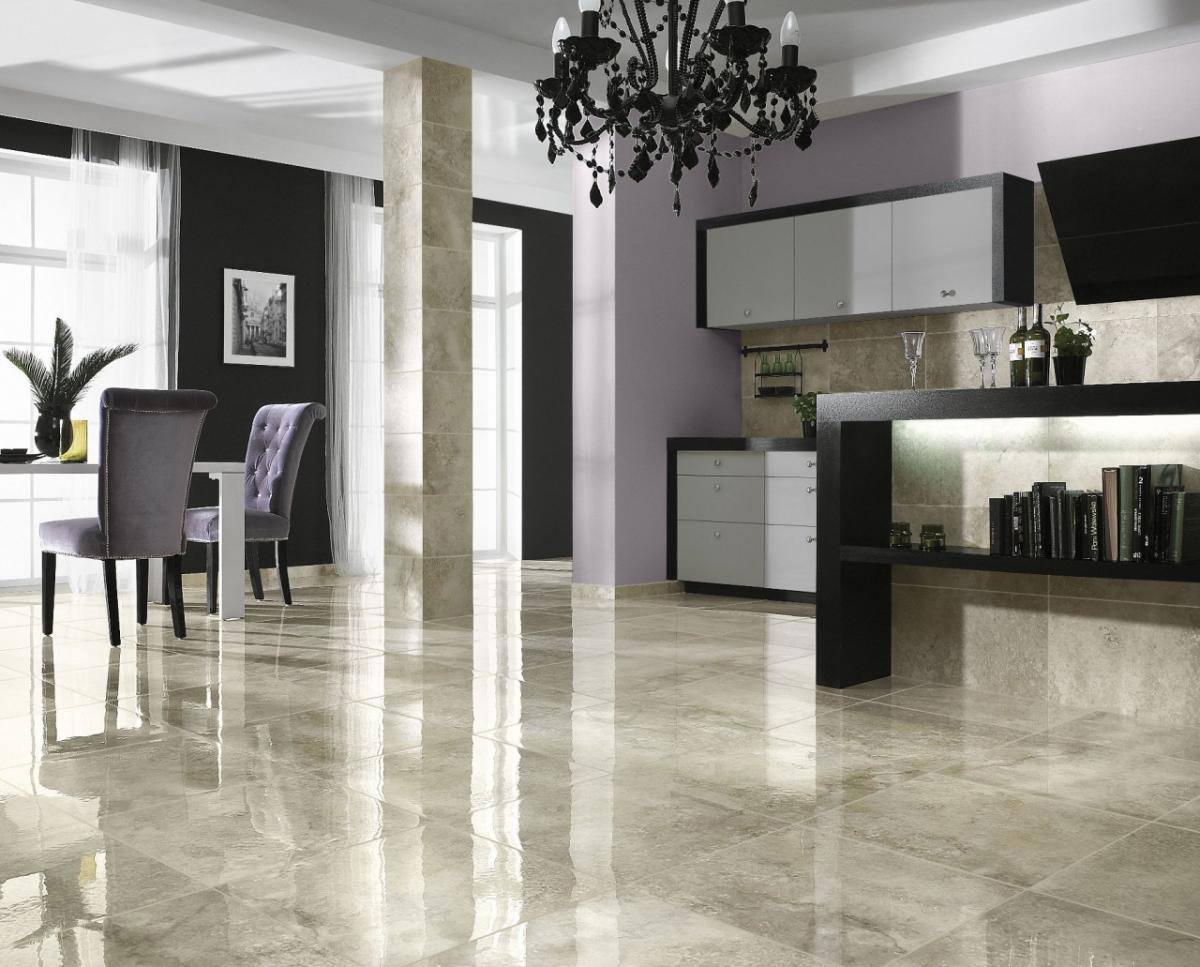 Для гостиной идеально подойдет дорогая отделка натуральным мрамором. Особенно точным и привлекательным будет покрытие пола полированным мрамором. А если при этом оформить в похожем стиле стены, дополнить все колоннами, то создастся «эффект дворца».