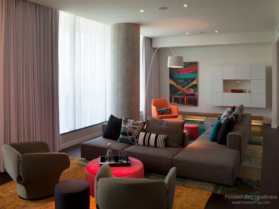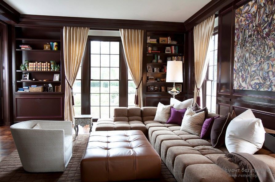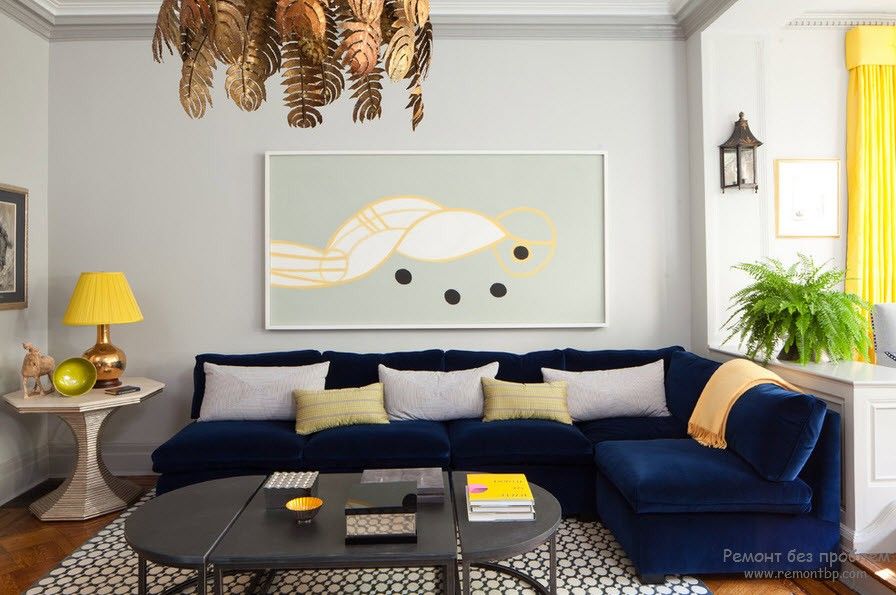 - можно сделать мебель самым ярким акцентом комнаты и сыграть на контрасте, например, используя сочетания зеленого и насыщенно-коричневого, синего и желтого или молочного, серого и бирюзового, кстати, одним из самых модных сочетаний современного интерьера считается серебристый и лиловый